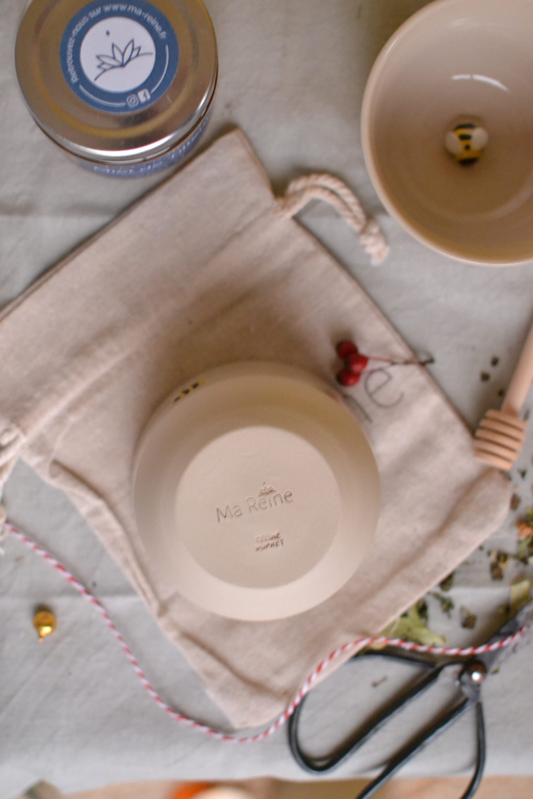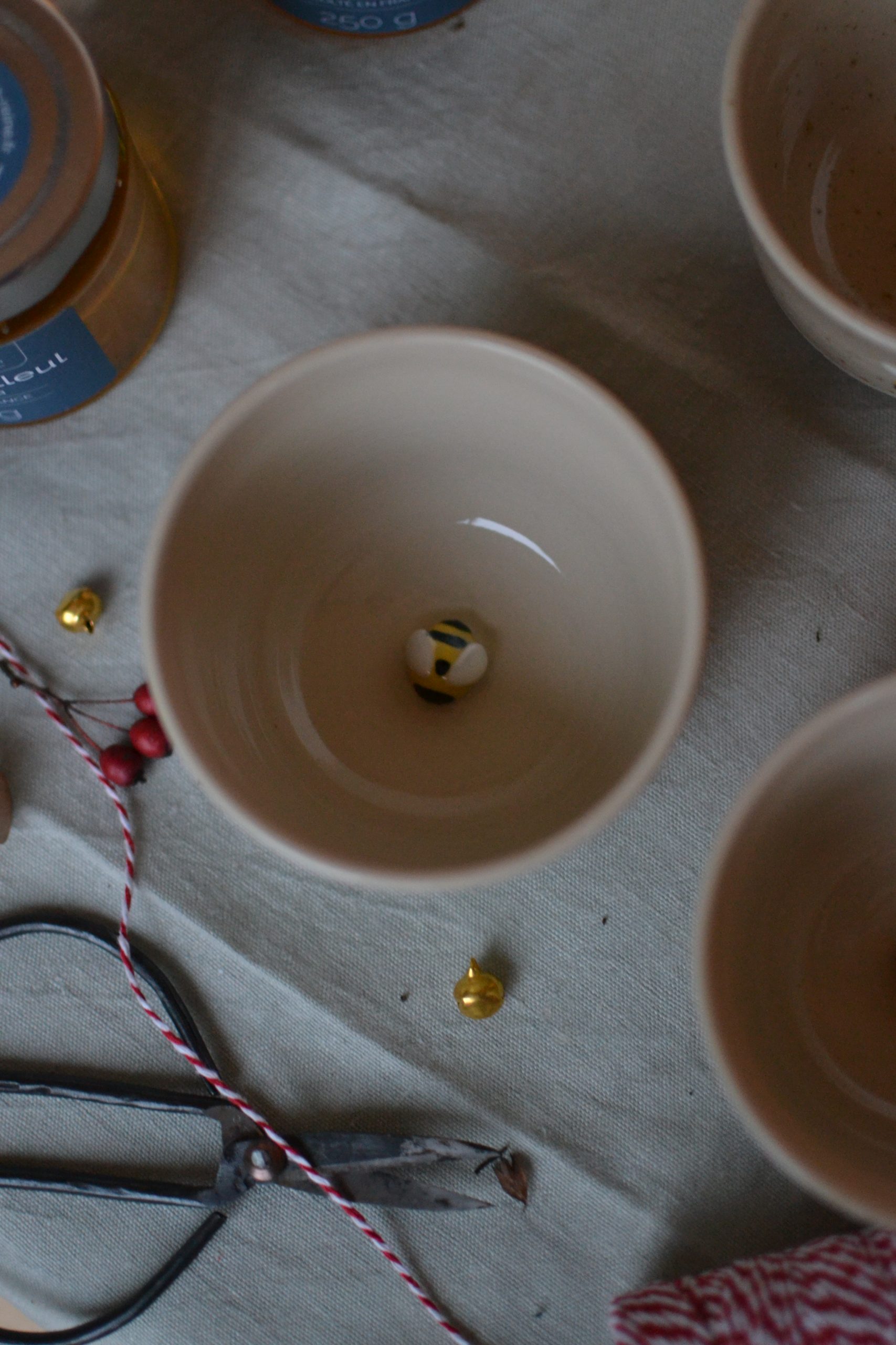 Issue de nos deux univers, autour des beaux objets fait main, de la nature et des abeilles, elle a été pensée pour convenir à différents usages par sa taille : tasse à café, cappuccino, à infusion ; petit bol apéritif; pour y glisser de petites affaires, ou pour se combiner avec le support à plantes de la même collection